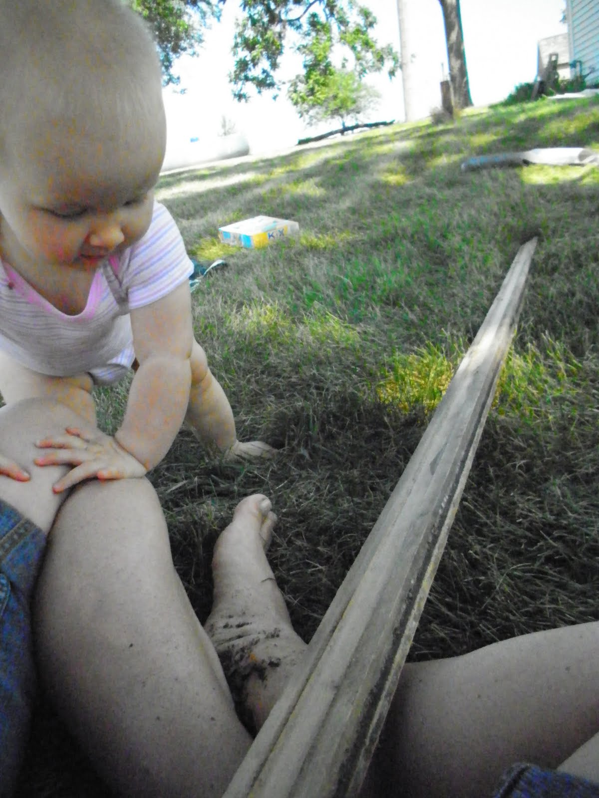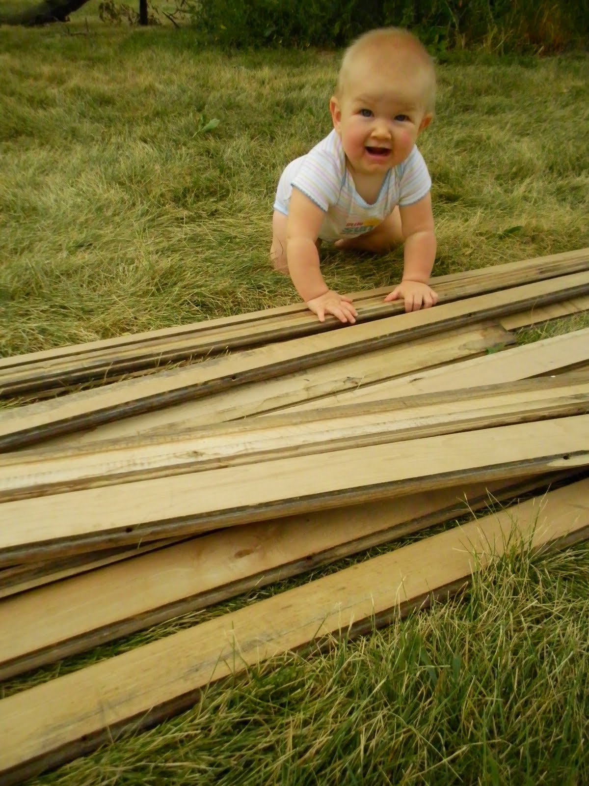 First of all, I do a lot of work while my kids are asleep.  It’s a whole lot easier doing cumbersome jobs without worrying about small children underfoot.  From their infancy, they fall asleep to the rhythmic pounding of the hammer and whir of the circular saw.  Luckily, most days they take naps simultaneously and for several hours at a time.  I can get a good start on my work for the day while they’re zonked out.  After the girls nod off for the evening, Jack and I divide and conquer until it either gets too dark to see what we’re doing in the yard or we’re just too darn tired.  Again, lots accomplished without little hands trying desperately to help.