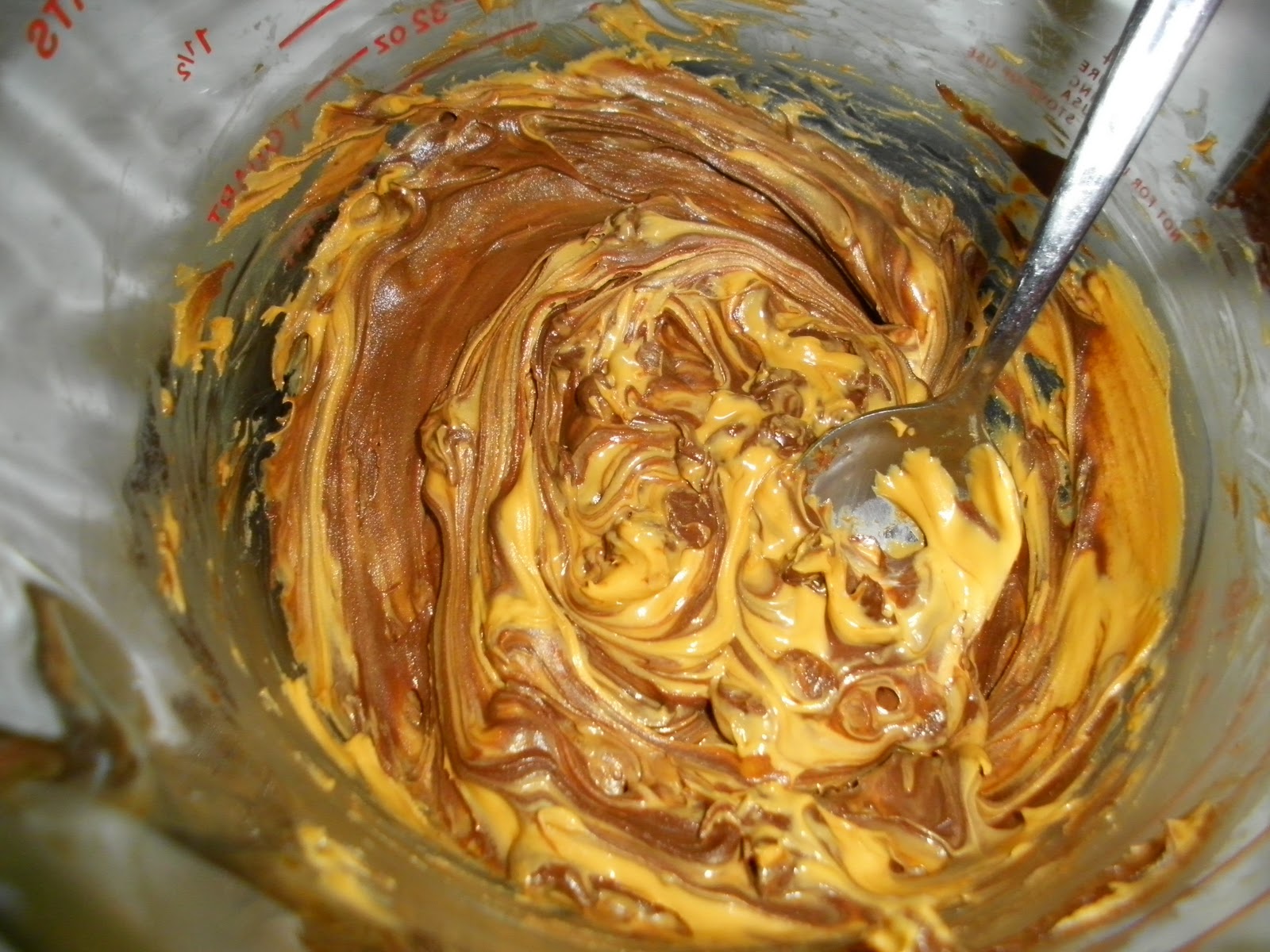 In a microwave safe bowl, combine the chocolate and butterscotch chips. Melt for thirty seconds and mix.