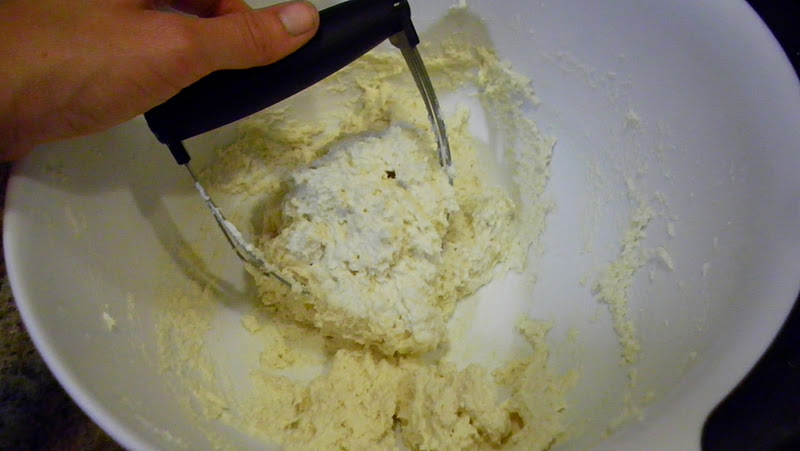 In a bowl, cut the sour cream into the Bisquick. Add the 7UP and mix until it’s a sticky dough.