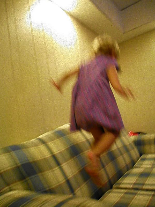So it didn’t take long for my girls to learn that I’ve got a pretty relaxed attitude about furniture, especially since we got all of ours for free. It’s nothing pretty–it clashes terribly–but it’s comfortable and man is it fun to jump on.