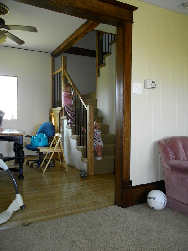 Claire was not completely innocent either. One day she was not particularly sleepy, I allowed her to come outside with me. Usually she sits and squeals while slapping the cats or munches on her crackers, but the ladder was too much of a draw to her too.