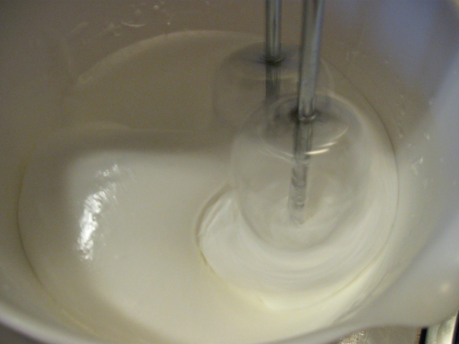 Meanwhile, in a clean bowl, whisk the egg whites, salt and cream of tartar until foamy, about two minutes. While mixing, add the extra 1 1/2 teaspoons sugar. Beat until soft peaks form, about two minutes.