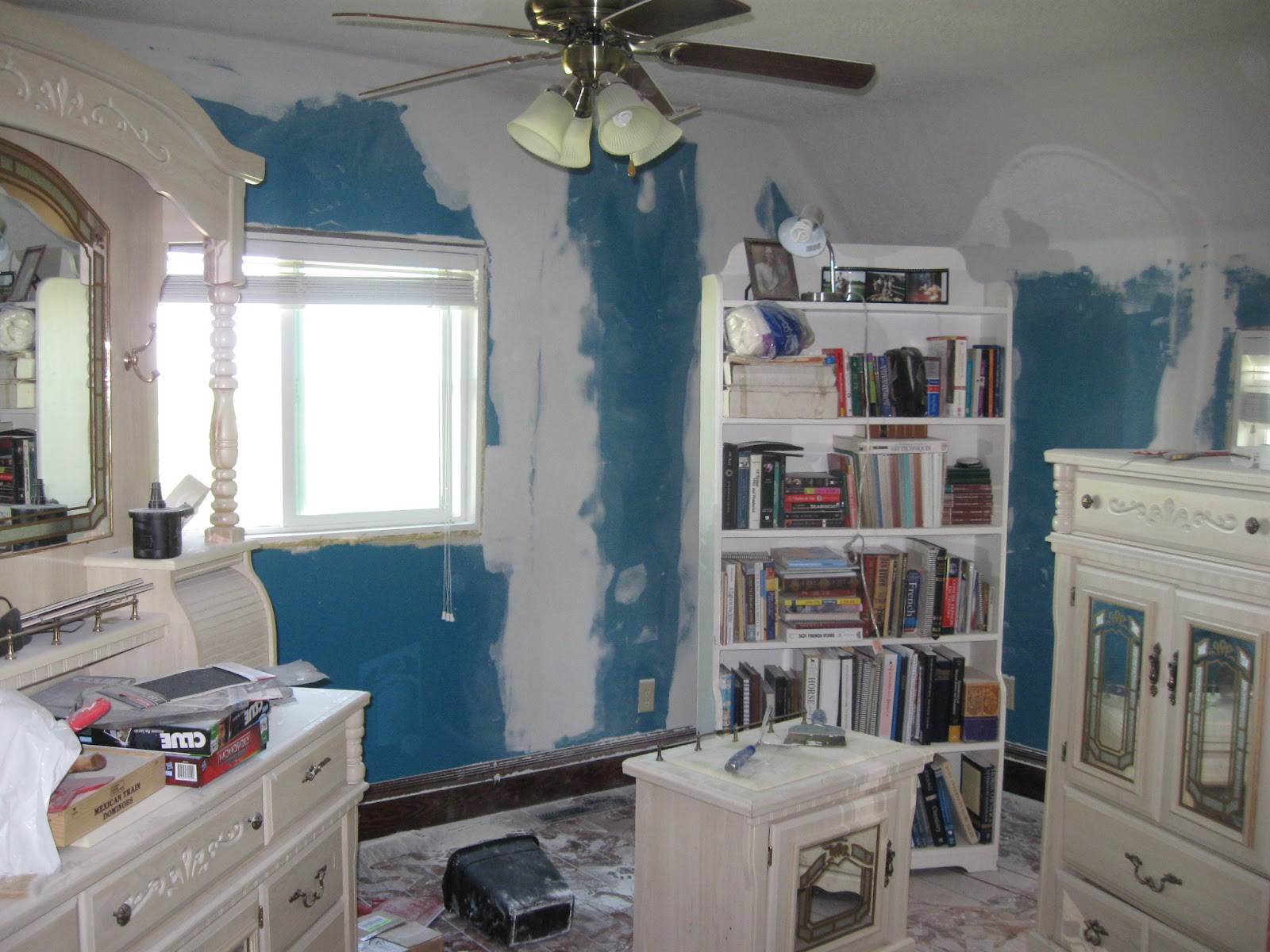 At eight months pregnant, we started on our room after having mostly completed a new upstairs bath and an adorable little nursery for the new baby. It was hot, dusty work but my parents and my friend Kristin (an architect and connoisseur of old buildings and one of the few that could see the potential in our decrepit farmhouse) came to help. In a few weeks, it was 80% completed and remained that way for the next few years.