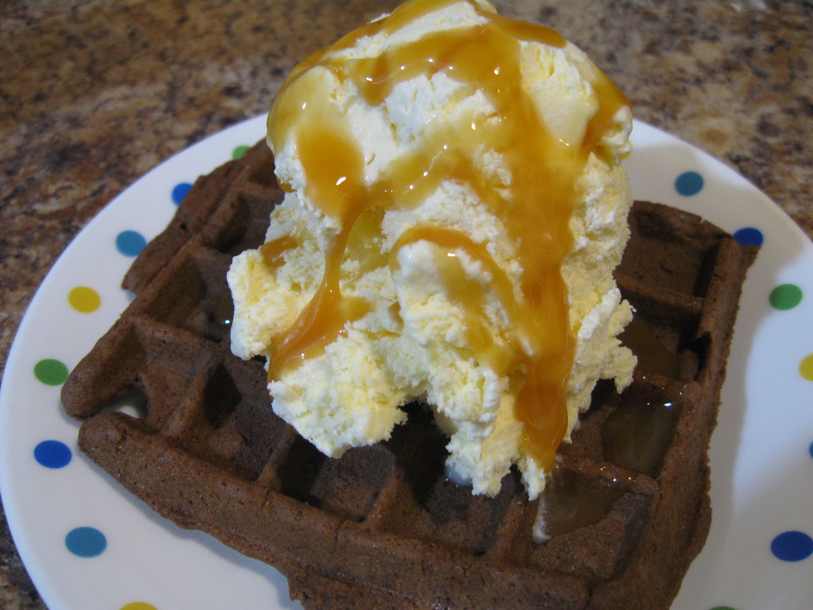 Lately I’ve become enamored with my waffle iron. There’s so much more than simply waffles to make, like hash browns while you’re busy fixing the rest of breakfast. Now, here’s a yummy brownie recipe that takes only minutes and is incredible versatile: serve with fruit, drizzle with caramel, top with whip cream, a scoop of ice cream or a dash of powdered sugar. Mmm…