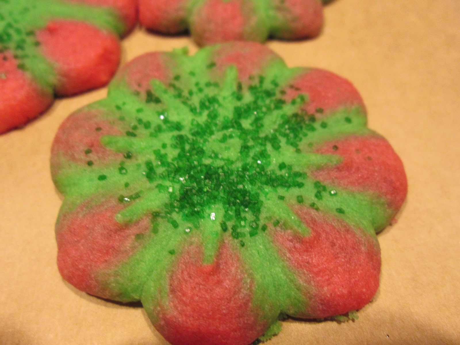 This recipe not only makes a delicious, less-sweet sugar cookie but with a little food coloring and some sprinkles and a cookie press, they turn out beautifully.