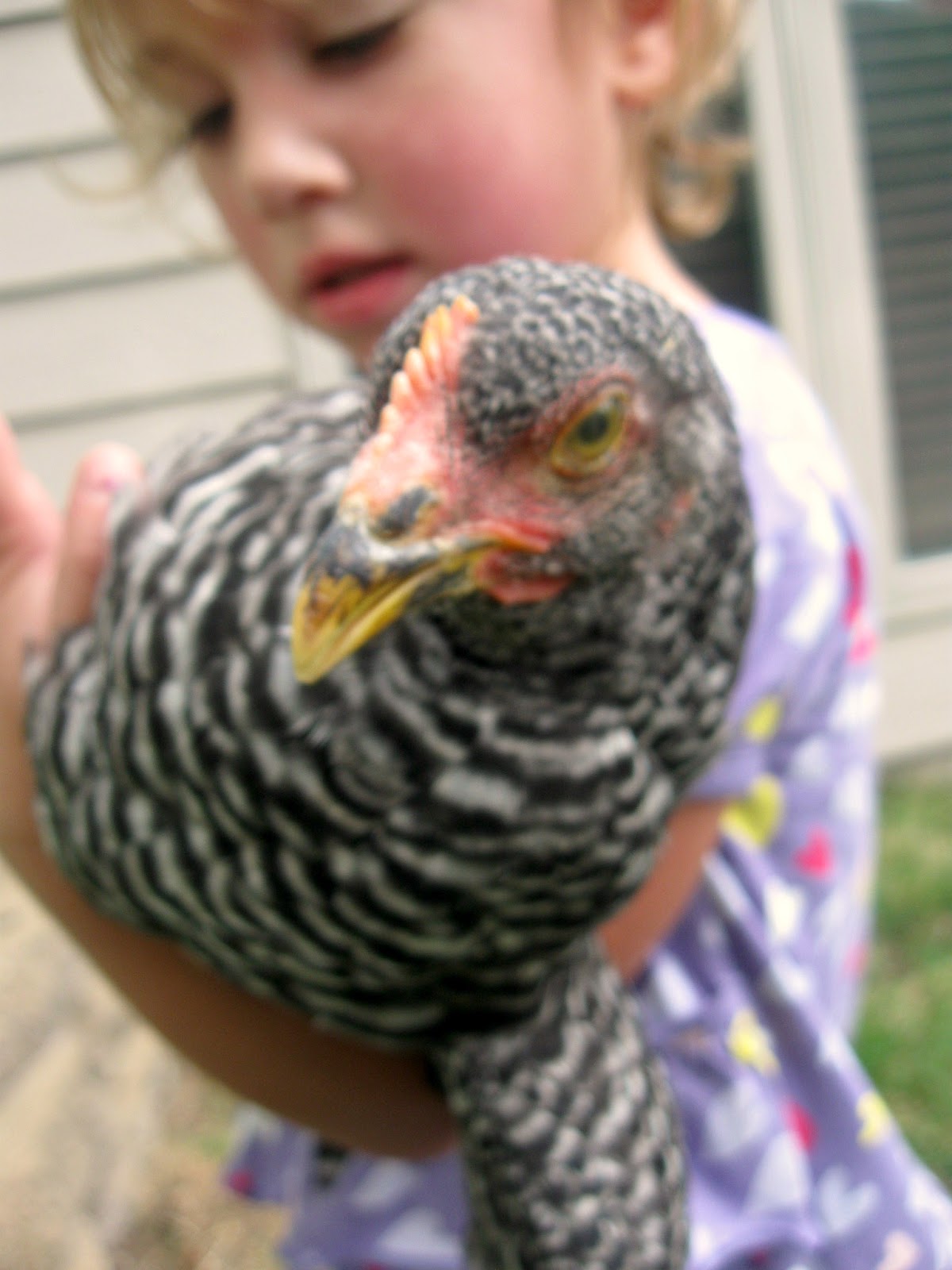 A red tailed hawk had victimized Pepper, a pretty little barred rock. The poor hen almost made it to the safety of the deck but was seconds too late. However, even more sad was the hawk. She was hungry enough that she wouldn’t leave her prey even when she was picked up by a human and moved. The drought has been rough on raptors since the mice and rabbit populations suffered causing them to go hungry too.