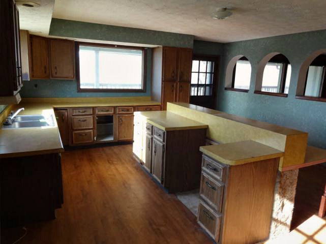 The appraiser labeled this room as a kitchen also, probably because the previous owners used it as a second kitchen for a long-term guest. I’m seeing it more as a mud/craft/cat room. It’s plenty spacious and has a door to head out back as well as access to the storage room and laundry. It needs some paint and tile (and I’m planning on moving a wall or two to expand the laundry room) and I’d love to build a wooden cubby for everyone to hang their coats and shoes. Otherwise, it’s already pretty functional–we’ve already drug plenty of mud through it and the cats enjoy eating and sleeping there at night. Maybe I’ll even be brave enough to put in another cat door…