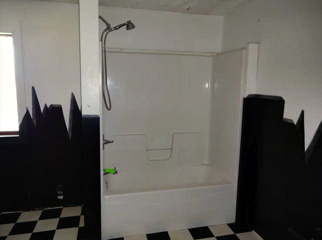 The walls have already been primed twice and the linoleum floor has been ripped up and primed too. Though the bathroom is functional, Jack is the only one who bathes in it. I go down to the girls’ bathroom for my showers.