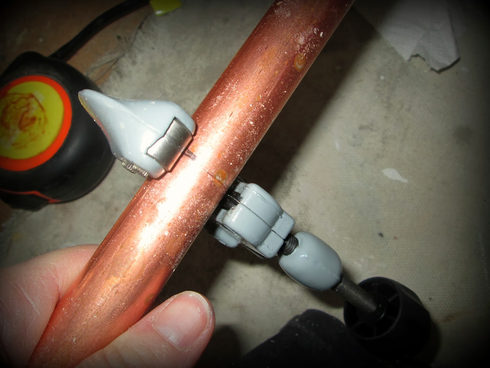 5) Cut the pipes–if you don’t own a pipe cutter, GET ONE. It makes the job easy and prevents the pipe from bending. For the following notes, cut at the following lengths (or choose your own notes by cutting various lengths):