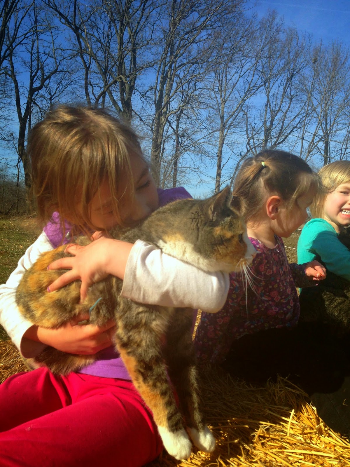 The girls got a lot of entertainment out of the roll of hay. It was a climbing challenge…