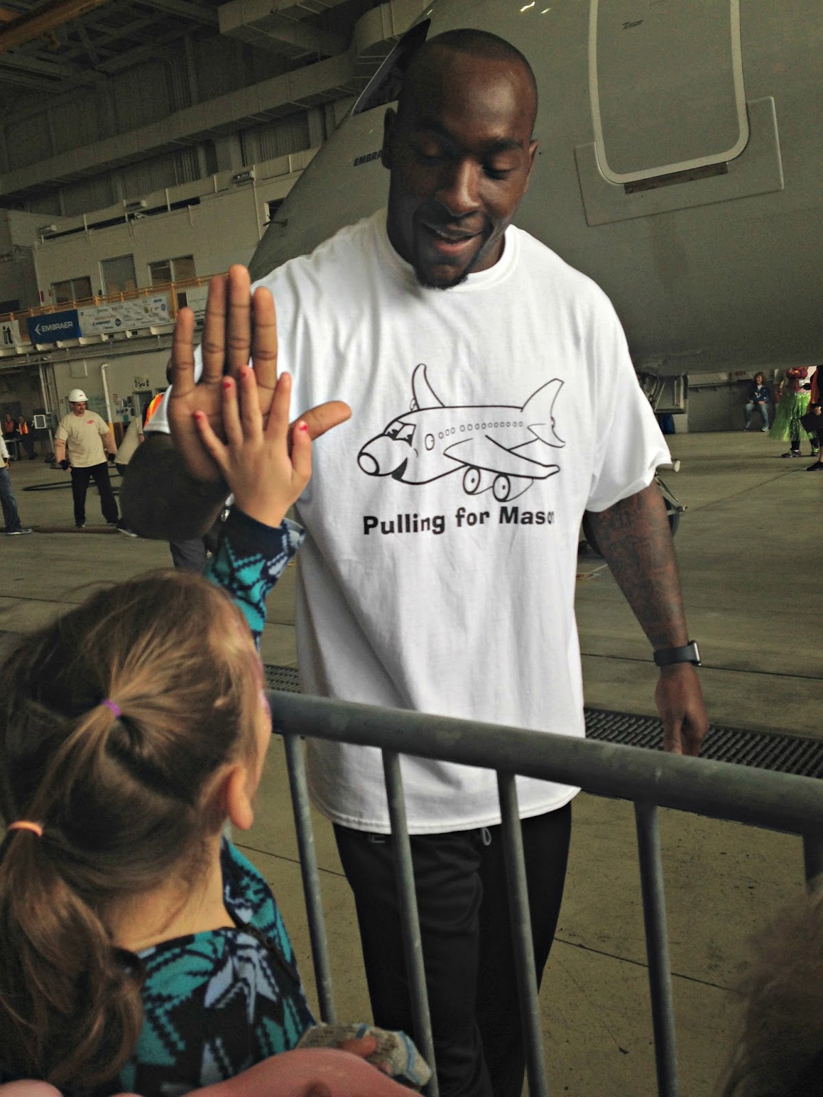 Evelyn high-fiving some famous Indianapolis Colts football player…(not real big football fans here, haha).