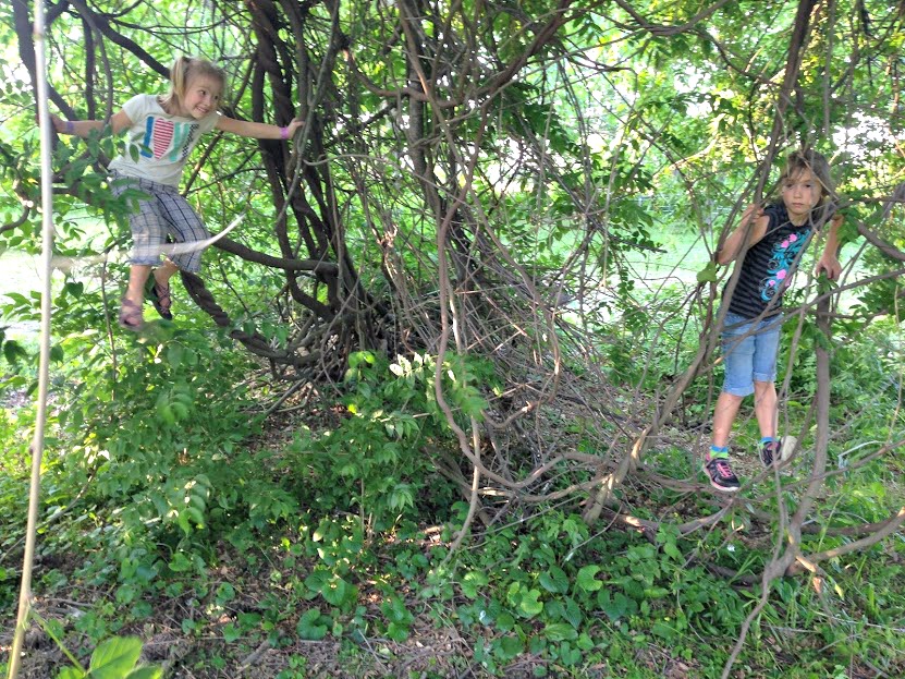 Plus, the girls love to play on the thick vines. They climb and swing and hang on them like regular little Tarzans.