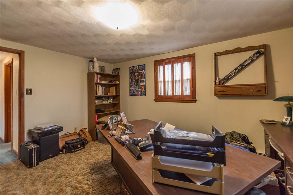 The master bedroom….ah, where do I begin? Though the previous owner did put some updates into the house, like the kitchen and bathrooms, the bedrooms were not fortunate enough to get much attention. The bedroom that’s called the master has orangish-red carpet and this crazy scalloped ceiling texturing that is totally straight from the ’60’s.