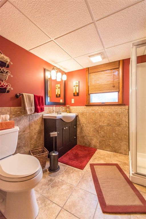 There’s another bathroom downstairs and it, too, has been redone. My only complaint–other than maybe the color not being my choice–is that the ceiling is pretty low. It’s because right above it is the “master” bath and all the drains. I’m still tossing back and forth whether or not to leave it as is or take it out completly and make it into a big walk-in closet. Ideas??