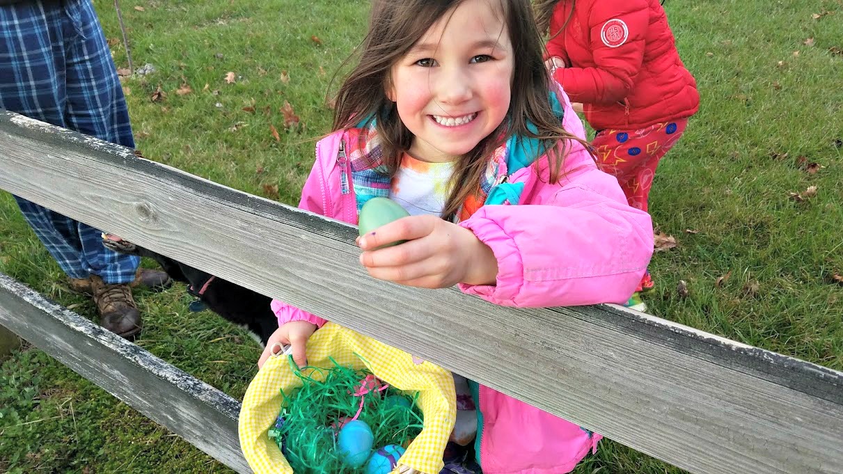 This year, the Easter Bunny, a.k.a. Jack, hid eggs all around the property, which really challenged the kids’ egg finding abilities. Luckily, the eggs were bright and at least all the hardboiled eggs were retrieved.