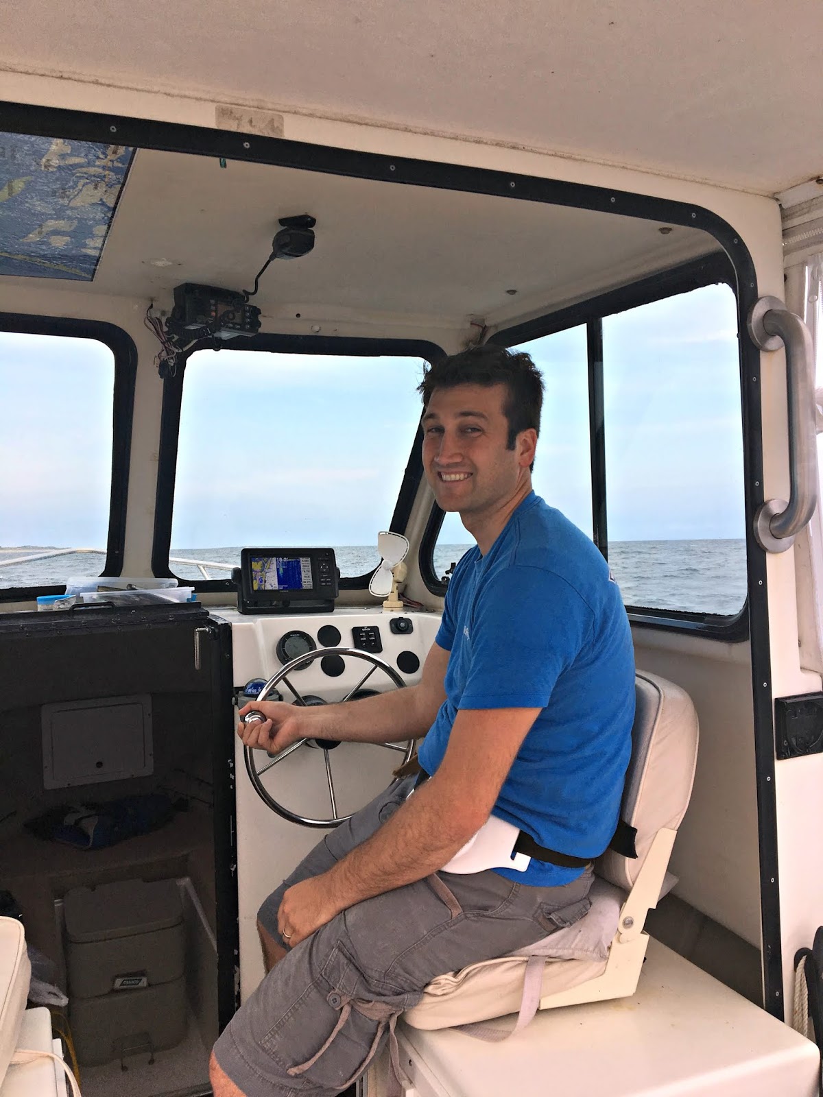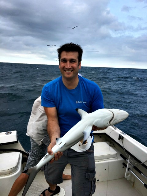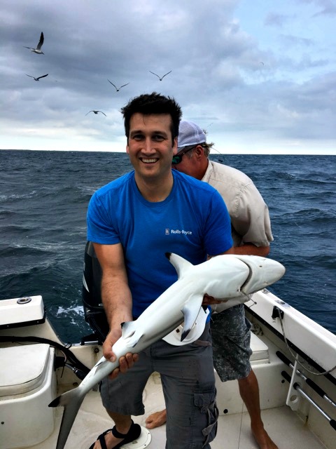 Before I had my own mini-adventure at girl’s camp, wrangling snakes and all, Jack had his own adventure out in North Carolina. He’d been called out on a last minute trip to show his virtual reality project to some high ranking General and other military personnel. After his demo, Jack and his coworker had time to head out onto the ocean…for shark fishing.