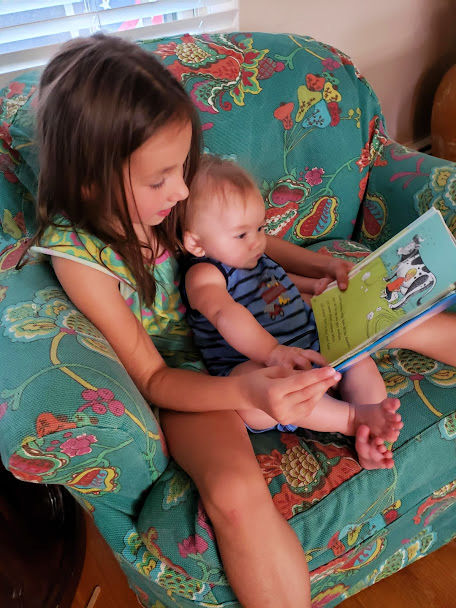 One of her very favorite “pets” are in fact, babies. She’s one of the resident baby whisperers and a lot of times, she can get younger siblings to calm down better than I can. She is extremely intuitive to what they need, a skilled and patient nurse, and with her great sense of humor and mature reading ability, is a natural storyteller.