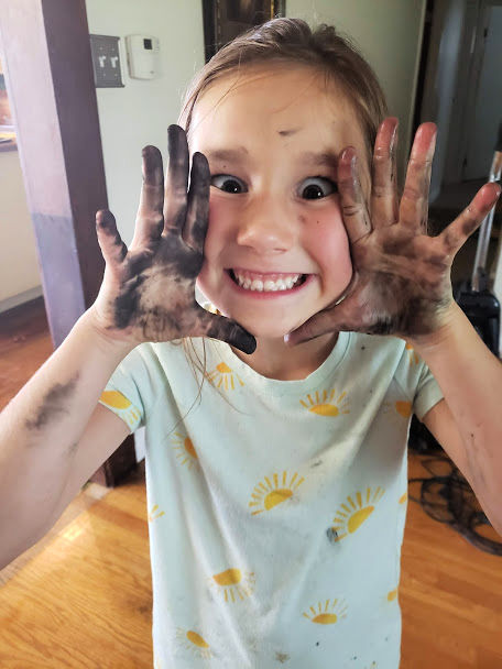 I am always struck by how creative our kids are. Where I see trash, Kate sees treasure. More than one diaper box has been turned into a bed for her stuffed toys and if we’re out of paint or chalk, she’ll use pokeweed berries and charcoal from the bonfire pit as her medium.
