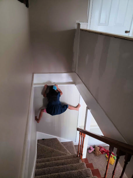 A part of her sense of adventure is a strange desire she has to climb. Everything. If there’s a support beam or a ledge or a half wall she can climb, she’s on it. Mostly, she does it for the thrill of conquering it but a lot of times, she just wants to hang out somewhere high up. She’ll take a doll or a book and if you’ve never seen her do it,