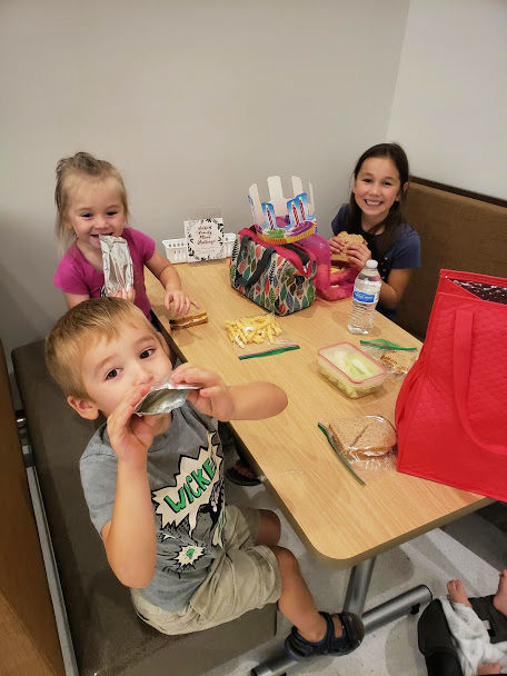 The younger kids and I went to eat lunch at school with her and she filled us in on who all her friends were and what exciting had happened that day.