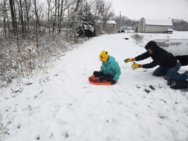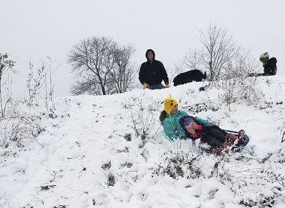 I love watching the kids go down the hill. I remember the anticipation of being shoved down a hill on a sled, and every time they shrieked with delight as they went bouncing down.