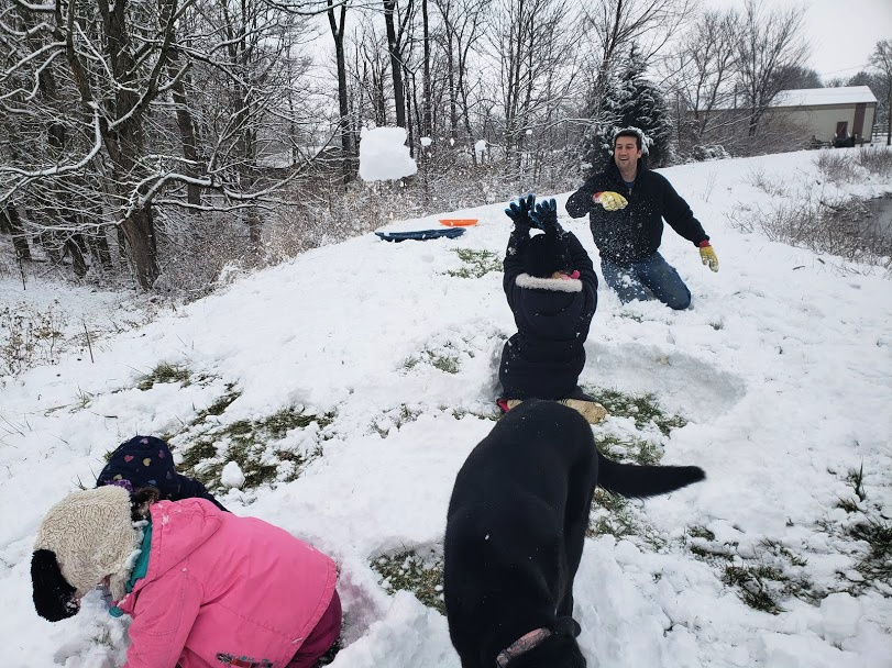They wasted no time getting their hands into the snow. By the time I got Peter and me bundled up, they were already building snow forts, stockpiling snowballs, had started a snowman, and were building ramps for the sleds.
