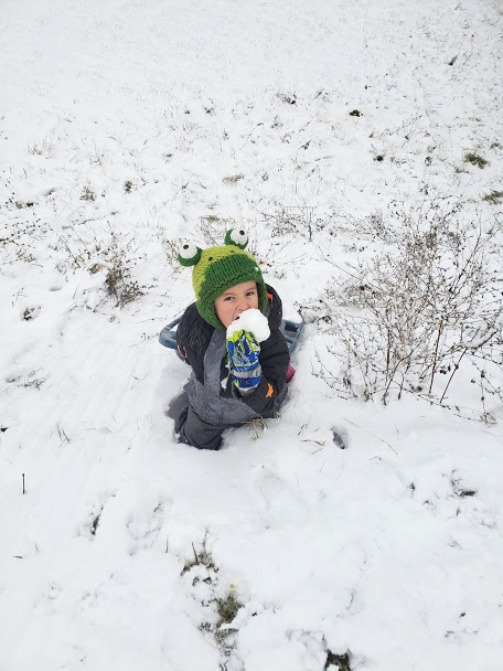 The whole time, Peter was a little underwhelmed by the whole thing. I don’t think he quite grasps what’s so fun about snow, but it was nice to get out for some fresh air after everyone had the stomach bug all week.