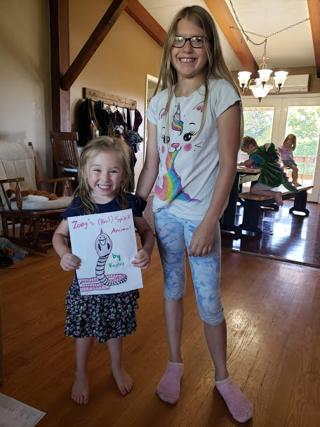 Even in the midst of all the commotion, there were still some quiet moments. I for one loved art time. It was a brief moment of calm while everyone focused on their projects. Sure, I was tripping and slipping over markers and crayons the rest of the day, but I got all kinds of beautiful artwork, like Zoey’s unicorn cobra spirit animal. 🤣