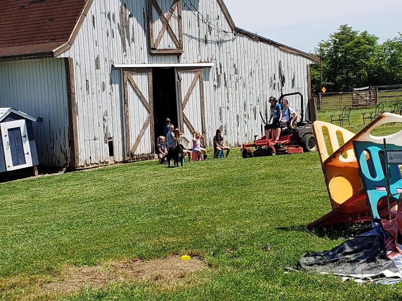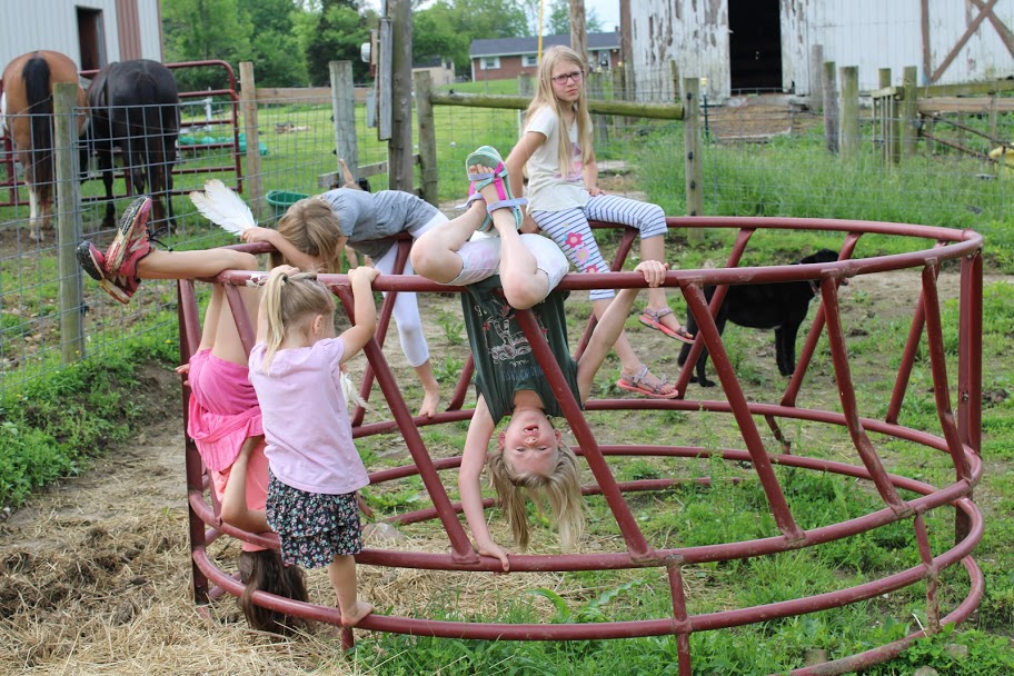 Aside from the pond, just being on a farm is a lot of fun for a kid. I know it was the highlight of my year when I’d get to visit a farm once a year when I was younger. Everything is interesting and worthy of investigation. The hay rings are for climbing…