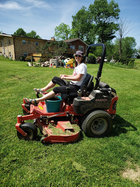 After my sister, Jenny, gave mowing a try and realized how much fun it is to spin around on a zero-turn mower, she gave each of the kids a chance to steer around the yard. Who needs a theme park when you can mow?!?