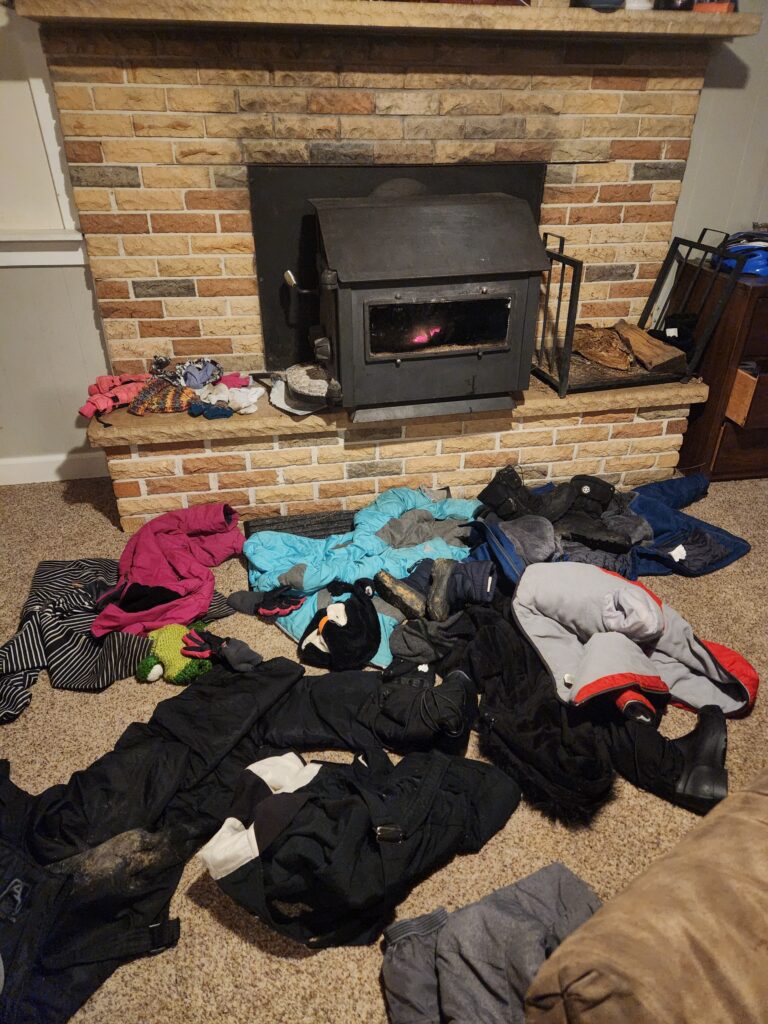 If it’s going to snow, at least we have a functional wood-burning stove for quick and easy warming up. Yes, there is a perpetual pile of snow gear laying in front of it, but it is a rather effective way to dry clothes and warm fingers and toes.