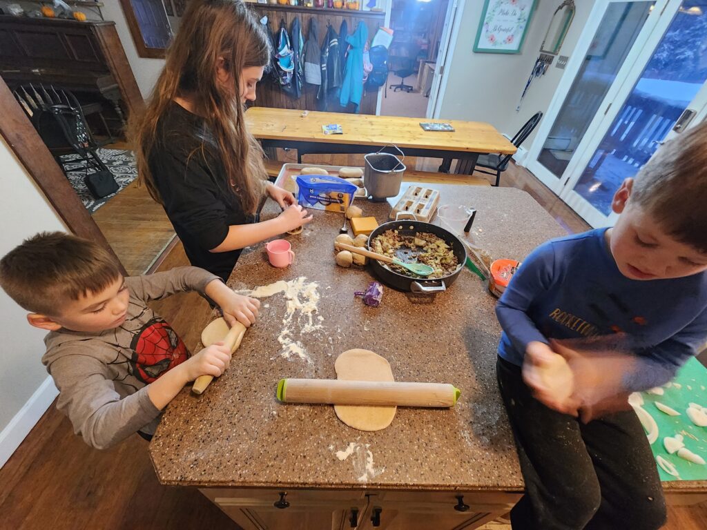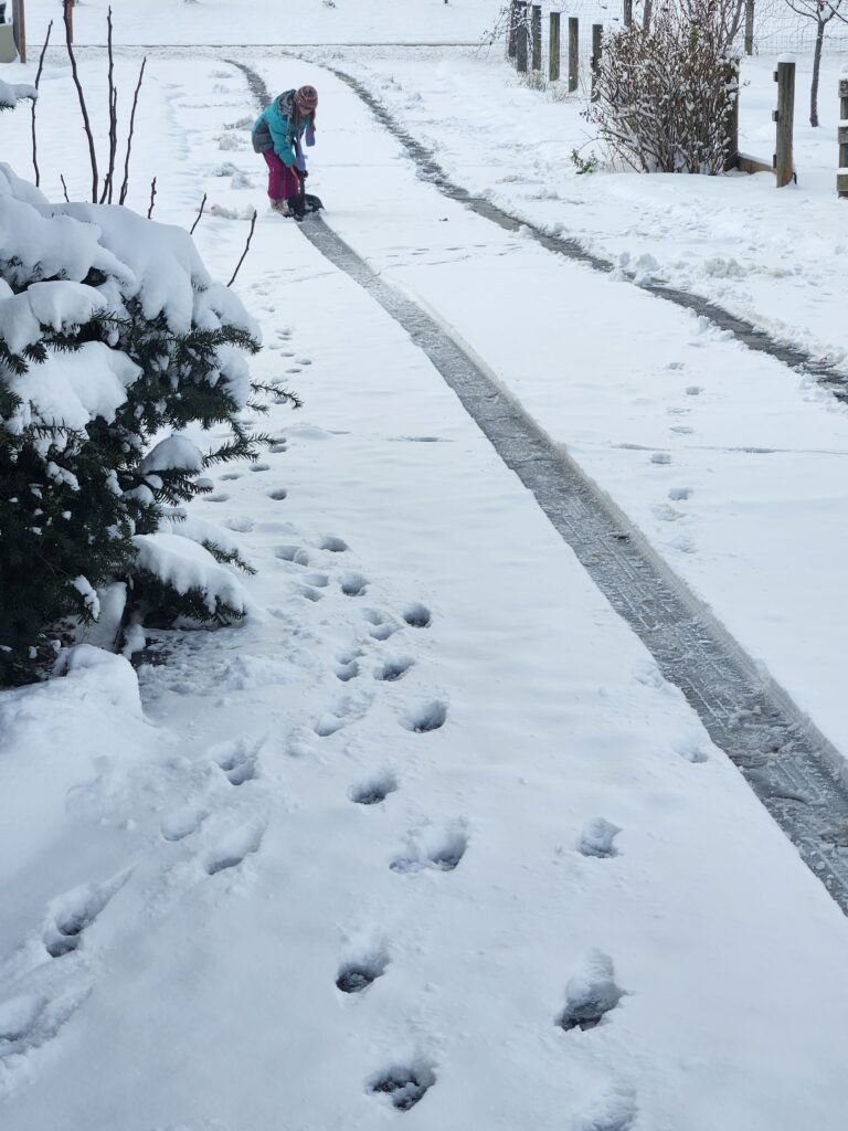 If it’s going to snow, at least there’s some help doing the morning chores, and there’s no need to rush. I spent a few lazy minutes in bed before rolling out of bed to stoke the fire, get the animals fed and watered, and clear the walkway. Bonus: some of the kids were outside, already playing in the snow and willing to help while others were inside, cooking me a hot breakfast.