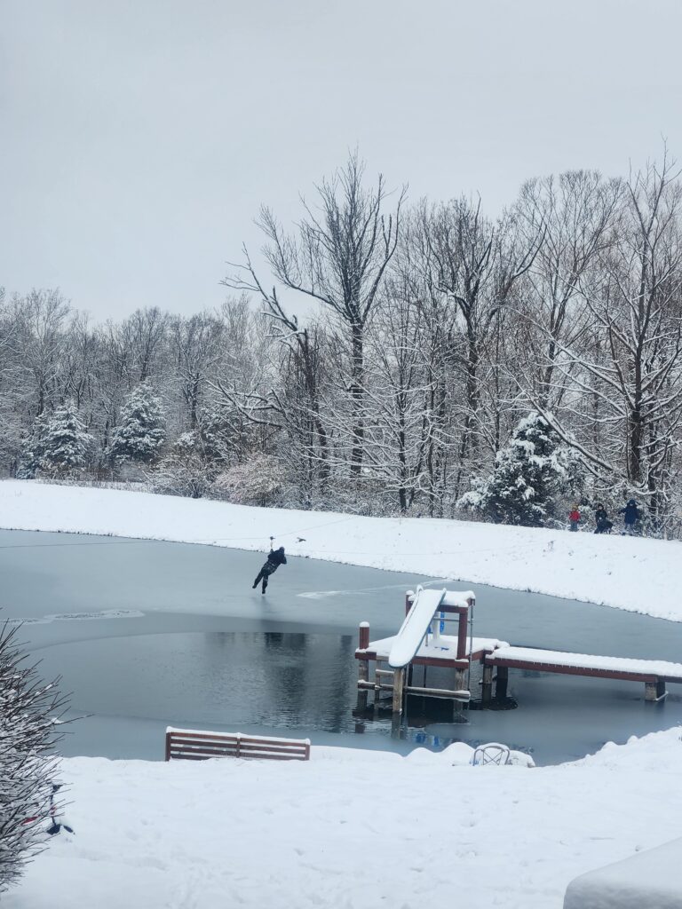 If it’s going to snow, and my kids forget their common sense, at least nothing terrible happened. I was shoveling the deck when I heard Kate screaming for someone to pull her back up. I whipped around to watch her coasting down the zipline, holding her toes above the slushy ice water of the pond. It isn’t even close to being frozen enough to walk on it, and thankfully Henry caught her before she dipped into the water, but… yeah… we had a talk about thinking through actions and considering potential consequences.